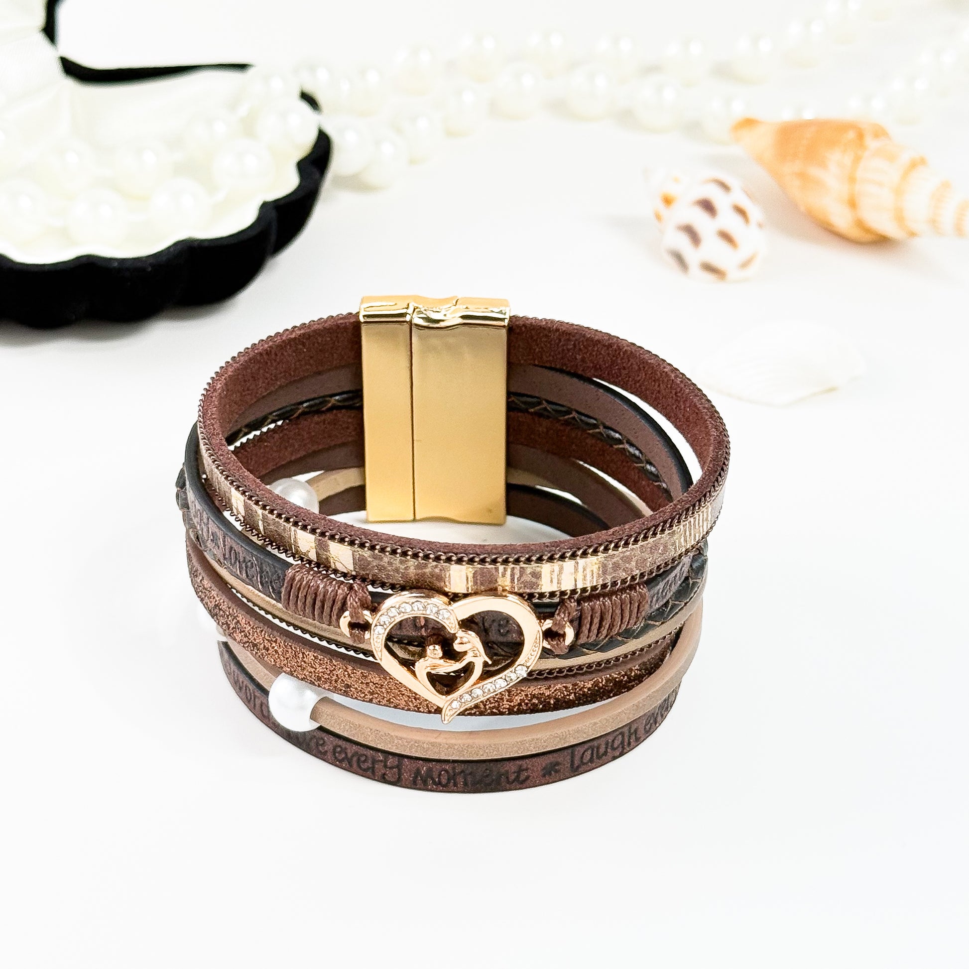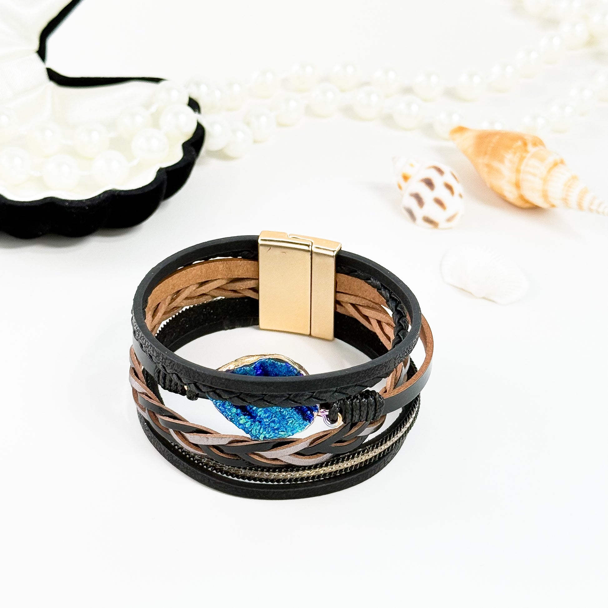 1. Multi-layer Design: Multiple layers of leather, metal chains, and braided ropes create a rich and textured look